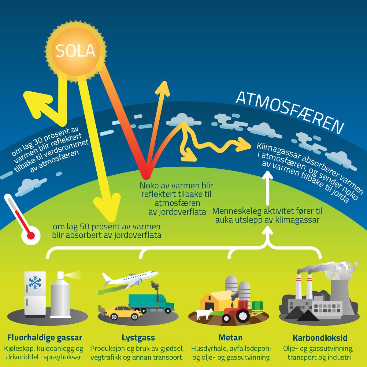 Klimagassane er livsviktige for å halda jorda varm nok til at det kan eksistera liv her, men forskarar er bekymra for at menneskeleg aktivitet fører til at det blir høgare konsentrasjon av klimagassar i atmosfæren, og dermed ein forsterka drivhuseffekt.