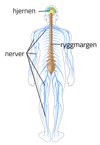 Nervesystemet består av hjernen, ryggmargen og forskjellige nerveceller.