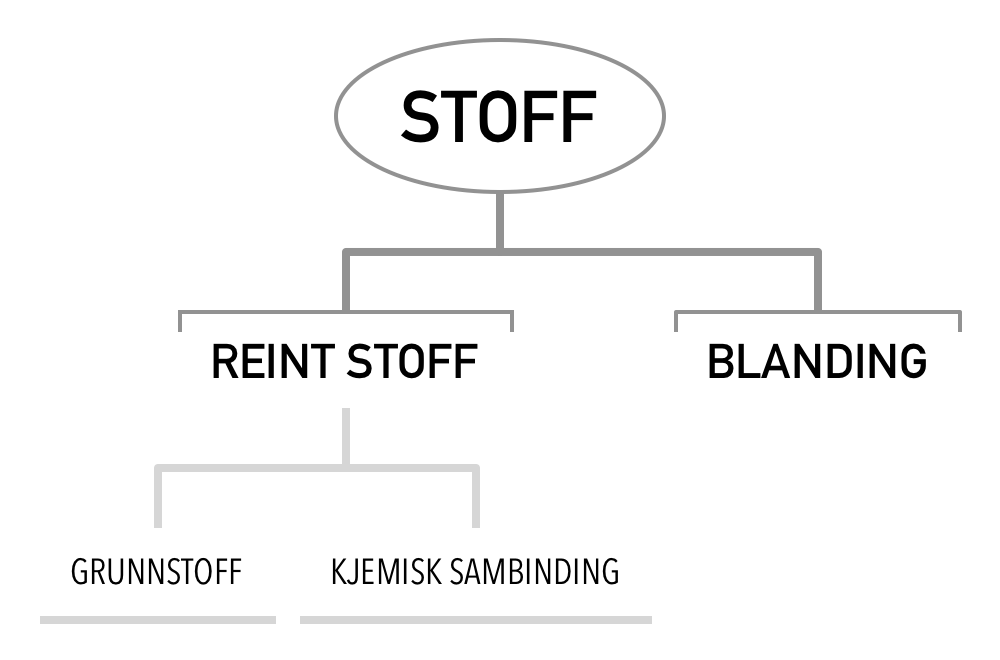 Alle stoff kan delast inn i reine stoff og blandingar. Dei reine stoffa kan igjen delast inn i grunnstoff og kjemiske sambindingar.